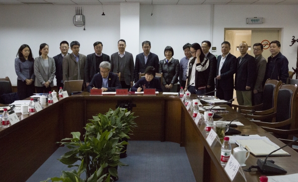 At the beginning, Assistant President Zheng Shaohua introduced the cooperation’s purpose and cooperation’s content. Afterwards, President Fan Liming and the President of Shanghai Institutes for international studies Chen Dongxiao signed astrategic cooperation agreement on behalf of each side. Both sides hope that this can be taken as a starting point and establish a close strategic cooperativerelationship.