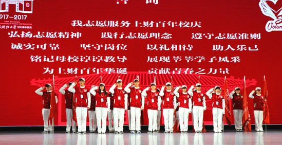 On November 10th, SUFE Centennial Celebration Volunteer Oath-taking Ceremony was held at the Arts Center, Guoding Road Campus. Zhu Mingxiong, Vice Chairperson of the University Council, directors of the schools, Institutes the administrative departments attended the ceremony. All volunteers dressed in their uniforms. Energetic and vigorous, the volunteers expressed their commitment to volunteer service work of the Centennial Celebration Day. The ceremony was presided over by He Weiwei, Deputy Secretary of SUFE Youth League Committee .
