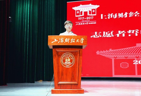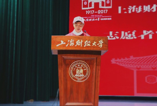 Ma Ji, Office Director of SUFE Department of Cooperation and Development, on behalf of the teachers, addressed in the ceremony. He said he was very honored to participate in the preparatory work of the Centennial Celebration. He extended gratitude to all the volunteers for their work, but also pointed out that sense of organization, discipline and responsibility is particularly important to all the volunteers.