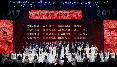 On the night of November 18th, “A Praise to SUFE” Centennial Celebration Gala was held at the Art Center of Guoding road campus. Leaders of SUFE, members of the university council, alumni from home and abroad, old comrade representatives, SUFE students and teachers attended the Gala .