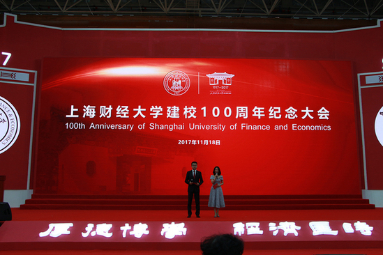 On the morning of November 18, 2017, SUFE Centennial Anniversary Memorial Conference was held in the gymnasium of Guoding road campus. Vice Minister of Finance Hu Jinglin, Vice Minister of Education Lin Huiqing, Deputy Secretary of the CPC Shanghai Municipal Committee Yin Hong attended the commemorative conference and addressed. Vice Mayor of Shanghai Weng Tiehui also attended the meeting.