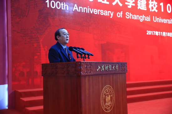 Lin Huiqing, member of the Ministry of Education Party Committee, Vice Minister of the Ministry of Education, said in her speech that for 100 years, Shanghai University of Finance and Economics had always been shouldering its the responsibility of cultivating financial and economic talents, innovating financial and economic theory and providing policies enriching the state and the people. In recent years, the school focused on constructing a high-level university with characteristics, adhering to reform and innovation, deepening the connotation construction, building a road that is base on the national conditions global oriented and fits its own development. The school not only played a leading role in the demonstration of financial and economic colleges and universities, but also made many useful exploration in internationalization and the development of higher education in china. She presented the hope that Shanghai University of Finance and Economics would regard centennial anniversary as a new starting point, continue to carry forward the fine traditions of being pioneering and pragmatic, shoulder the mission, accelerate the construction of an internationally renowned research university specializing in finance and economics and make greater contribution to build a stronger country in higher education and realize the Chinese dream of the great rejuvenation of the Chinese nation !