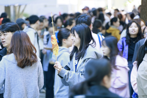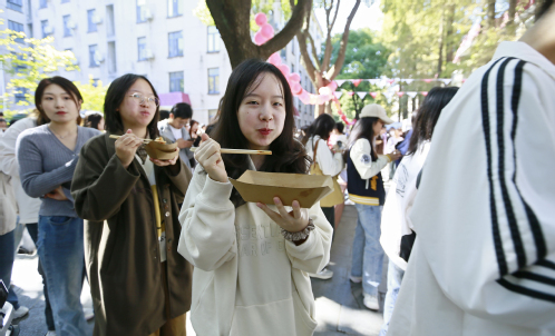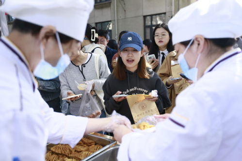 In addition to enjoying delicious food, this year's food festival has also added an interactive section called Immersive Experience of Traditional Food and Folk Customs, where pounding glutinous rice cakes and hand grinding wheat flour have attracted the attention of students. The custom of making glutinous rice cakes can be traced back to ancient agricultural societies. It not only symbolizes reunion, harvest, and auspiciousness, but also embodies the ancient people's yearning and pursuit for a better life.