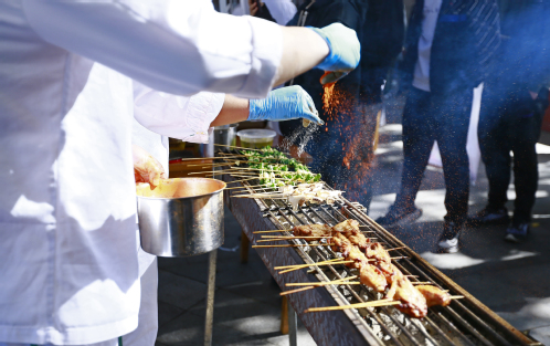 There are 28 stalls at this food festival, offering over a hundred traditional delicacies from all over the country including barbecue and fried skewers, seafood and spicy braised dishes, desserts and drinks. The chefs from various canteens have showcased their unique skills. The newly opened Sixth Cafeteria participated in the event with fragrant fried chicken ribs, steak, and Mexican chicken rolls, with a long queue in front of the stall.
