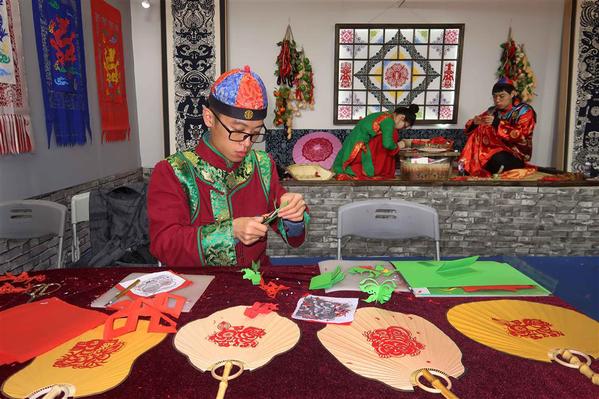 Forty-seven booths of artworks are on display at Shanghai Exhibition Center until Saturday. Some of the booths focused on the promotion of China’s traditional art and culture like shadow play, Sichuan Opera, paper cutting, lantern design, folklore and handicrafts.