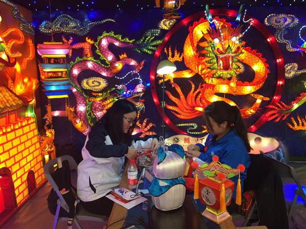 Students make paper crafts at the Fifth National University Art Exhibition in Shanghai.