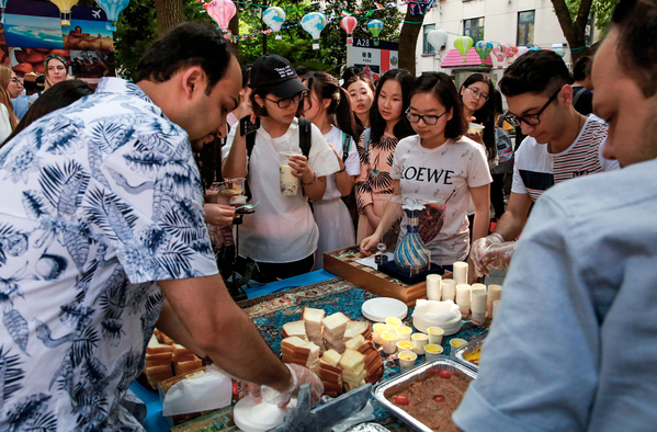 At the following food carnival, exquisite food from 34 booths formed the “world at the tip of the tongue” on the campus at this special moment of both late spring and early summer. Whether it is China's Oil Block or Vietnam Spring Roll; whether it's Malaysian coconut rice or Singapore's pork dumplings; whether it's Brazilian cheese ball or Cuba’s “Muros”; whether it is Turkish barbecue or Kazakhstan’s hand Meat; Whether it is a Dutch waffle or French macarons, all the teachers and students are impressed. In this food fiesta, the booths also prepared traditional games to interact with all the participants on the spot.