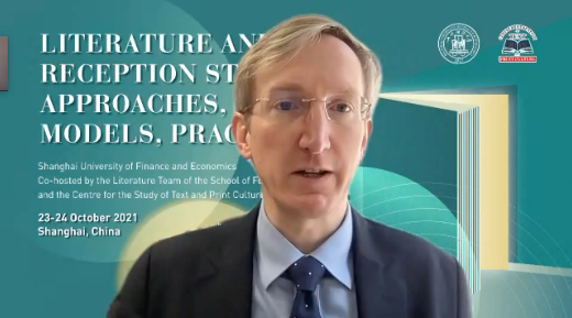 On 23 and 24 October 2021, the School of Foreign Studies of the Shanghai University of Finance and Economics played host to an international conference, delivered via Zoom, on “Literature and Reception Studies: Approaches, Models, Practices.” The conference was co-hosted by the School’s Literature Team and the Centre for the Study of Text and Print Culture and chaired by Sandro Jung, Distinguished Professor of English and Comparative Literature, Director of the Centre for the Study of Text and Print Culture, and Head of the Literature Team. It was opened by SUFE Vice-President, Yao Lingzhen, and the opening was presided over by Zhao Ke, Associate Dean of the School of Foreign Studies.