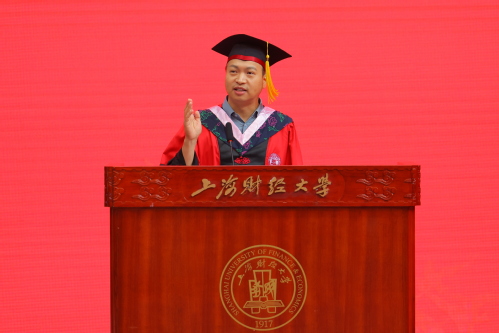 Peng Yihao, an alumnus of the Class of 2000, majoring in Certified Public Accounting, recalled his experience of studying and learning in SUFE and shared his heartfelt experience since he participated in the work of Xinjiang Aid. He explained how to make choices in the face of the unknown by sharing two stories of Tibet support, interpreted the spiritual core of “running out of the school door and learning in the actual work” with his personal experience of Tibet support, and encouraged the graduates to get out of the comfort zone and break the path dependence with the ambition of “daring to change the sun and moon into a new sky”. He encouraged the graduates to get out of the comfort zone and break the path dependence with the ambition of “daring to change the sky and the moon”.Finally, he expressed his sincere blessings and expectations to the graduates, saying that all for the construction of the motherland constitutes the common initial mission of the people of SUFE, and wished that the graduates should shoulder the responsibility of the times, and run to the broad world with a firm step.