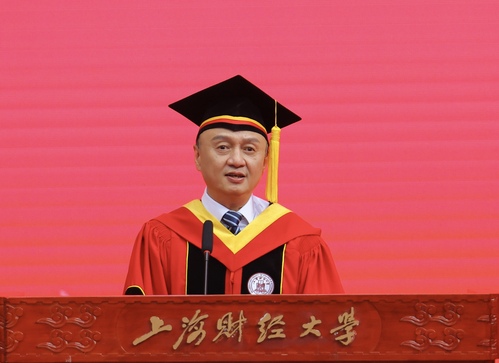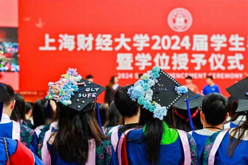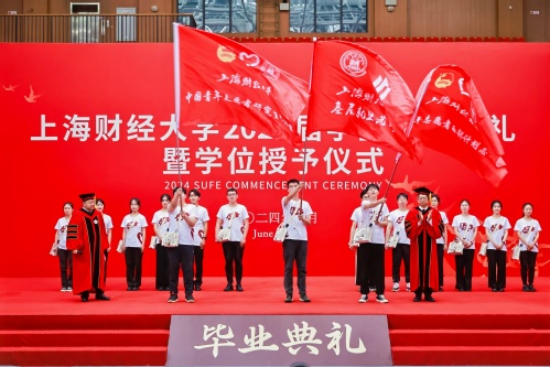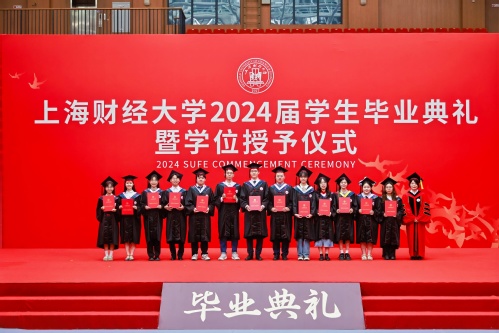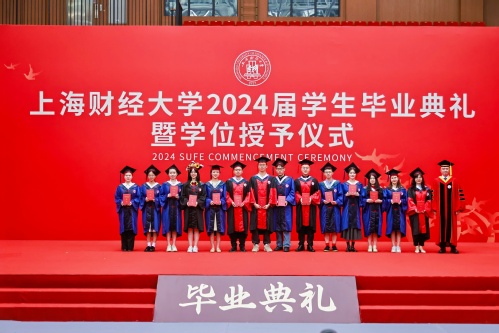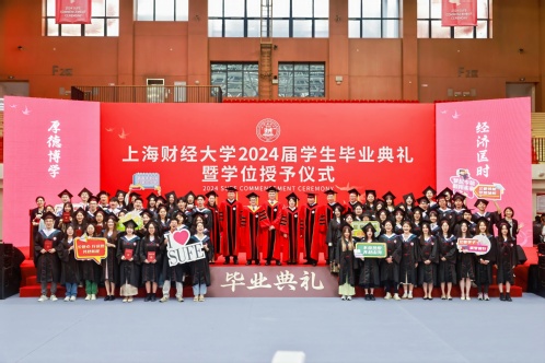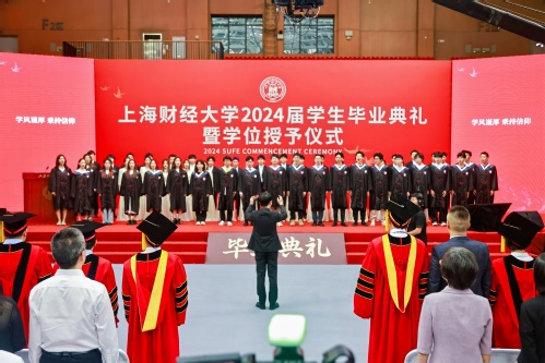 On June 26, 2024 SUFE Commencement Ceremony was held in the comprehensive gymnasium of the Guoding Road Campus. University leaders Xu Tao, Liu Yuanchun, Chen Xinyuan, Yao Lingzhen, Zhu Mingxiong, He Pengcheng, Li Zengquan, Liu Liya, Liu Qingsheng, Standing Committee of the University Council Zhou Guoliang, Cao Dongbo, Chu Hua, alumnus of the 2000 undergraduate in Certified Accounting major, the 10th batch of Shanghai's Tibet-aiding cadre, Peng Yihao, as well as heads of administrative departments, schools and colleges(institutes, departments), representatives of the professors and graduates of the Class of 2024 with Bachelor's Degree, Master's Degree or Doctoral Degree, attended the ceremony.