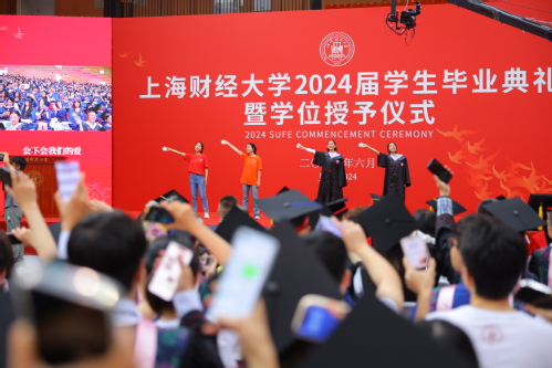 Before the ceremony began, teachers and students gathered to watch the video of the colorful campus activities of the 2024 graduates and reminisced about their lives in SUFE. Representatives of the graduates sang Youths’ China, Starry Sea and other crosstalk songs, with loud and clear singing to send sincere blessings to the graduates.