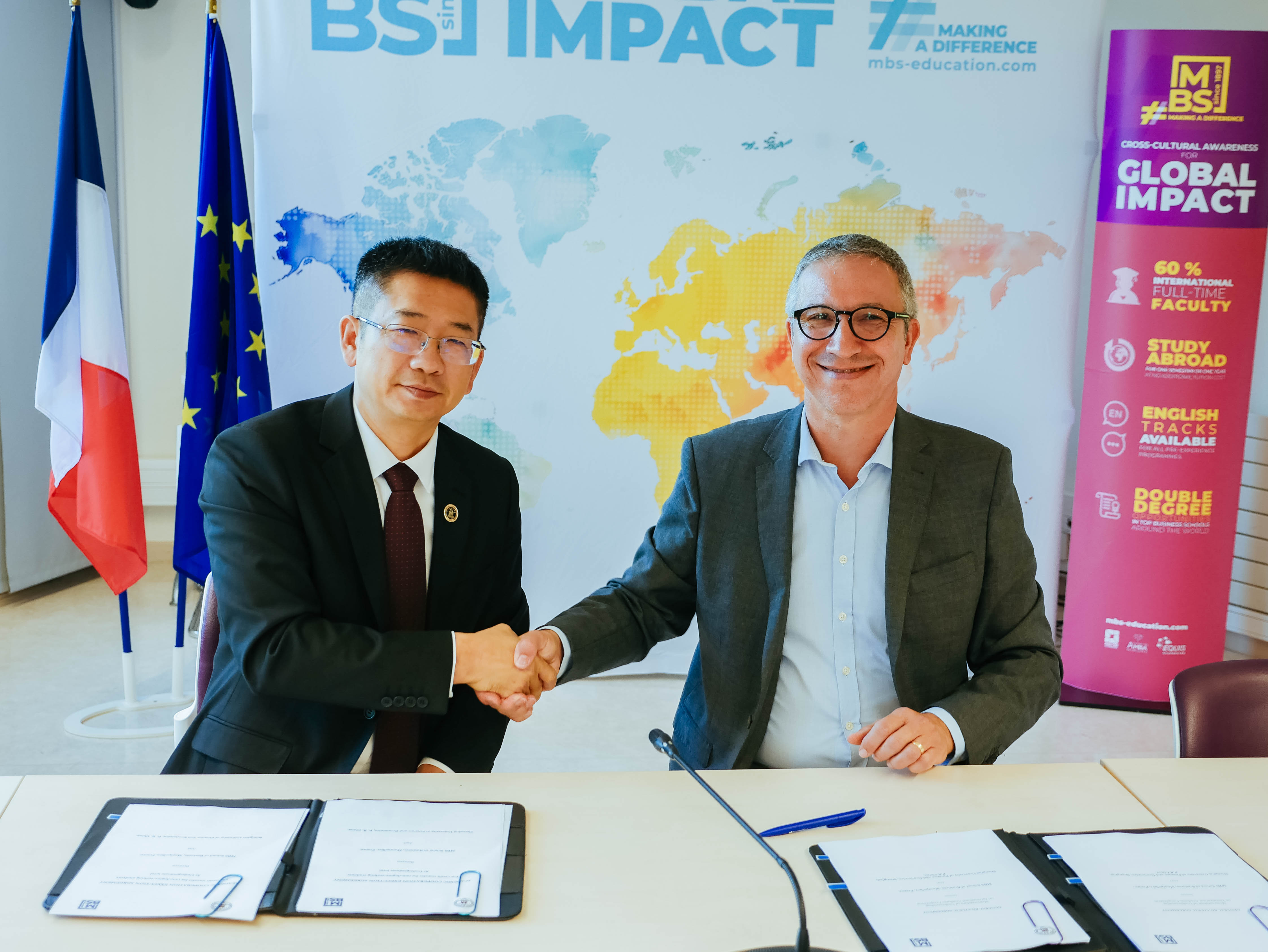 On the morning of October 23, the delegation visited Montpellier Higher Business School (MHBS) in France. Bruno Ducass, Dean of the Ecole Supérieure de Commerce de Montpellier, Carole Santos-Magliozzi, Director of the International Cooperation Office, Cyril Foropon, Director of the Doctor of Business Administration (DBA) Program, Jonathan Luffarelli, Director of the Graduate School, Elsa Kassardjian, Director of the BIBA Program, and others met with the delegation.and Elsa Kassardjian, Director of BIBA Program, met with the delegation. He Pengcheng introduced the history and advantages of SUFE and shared the key work of SUFE in recent years to serve the national strategy. The two sides fully exchanged and discussed the conditions, paths and steps of scientific research cooperation, DBA program construction, and joint development of international undergraduate and international master's degree, and agreed to further strengthen the contact and deepen the cooperation in the relevant fields in the future. During the meeting, He Pengcheng and Bruno Ducass signed a new Memorandum of Understanding on behalf of the two universities and renewed the agreement on student exchange program.