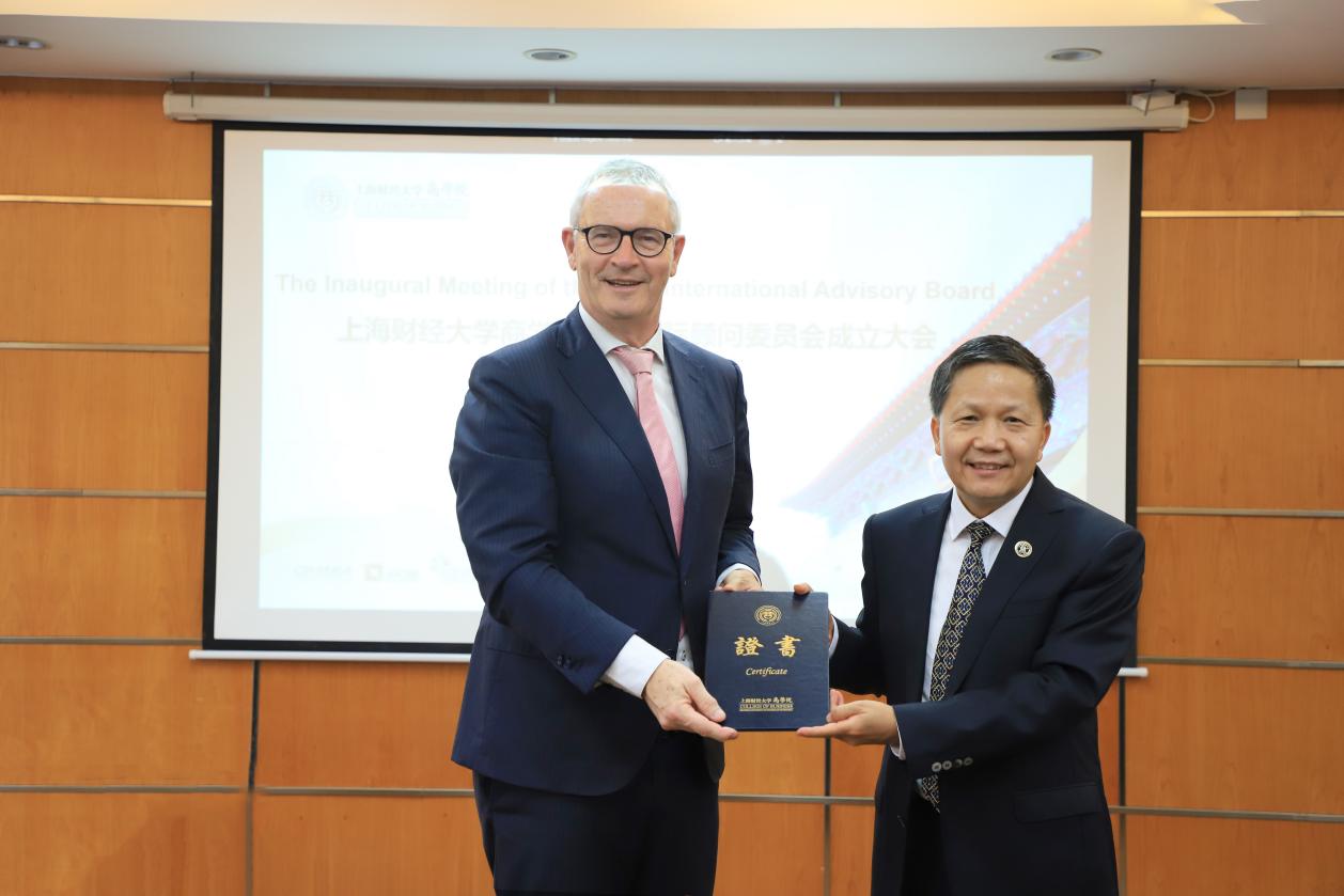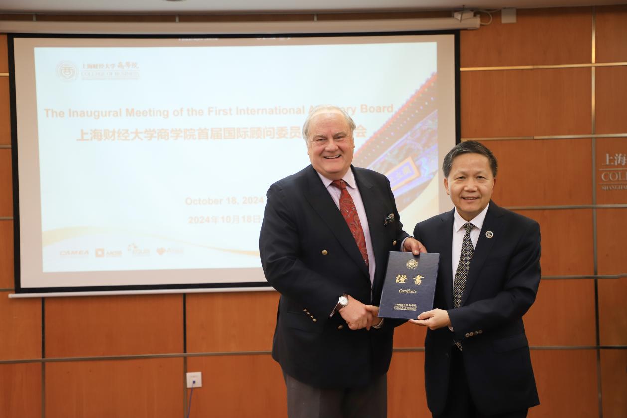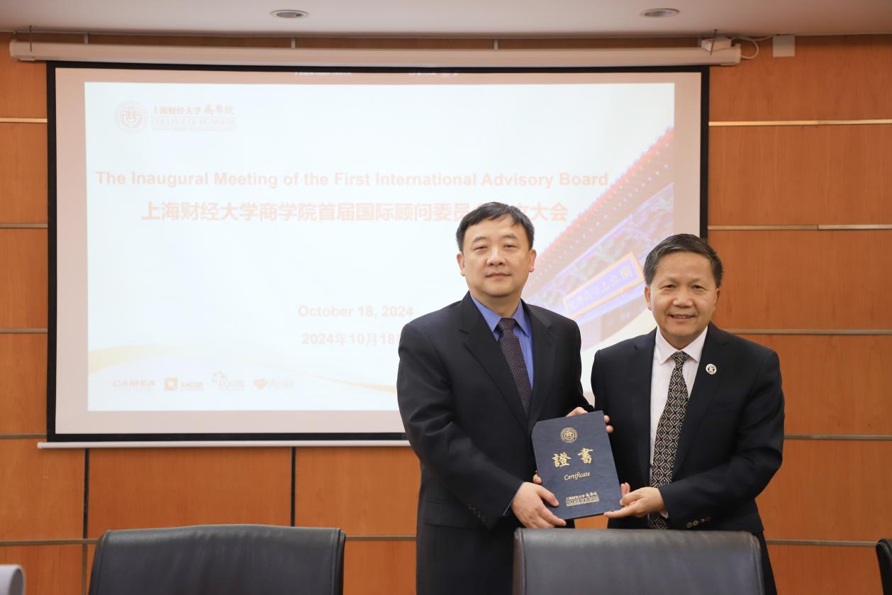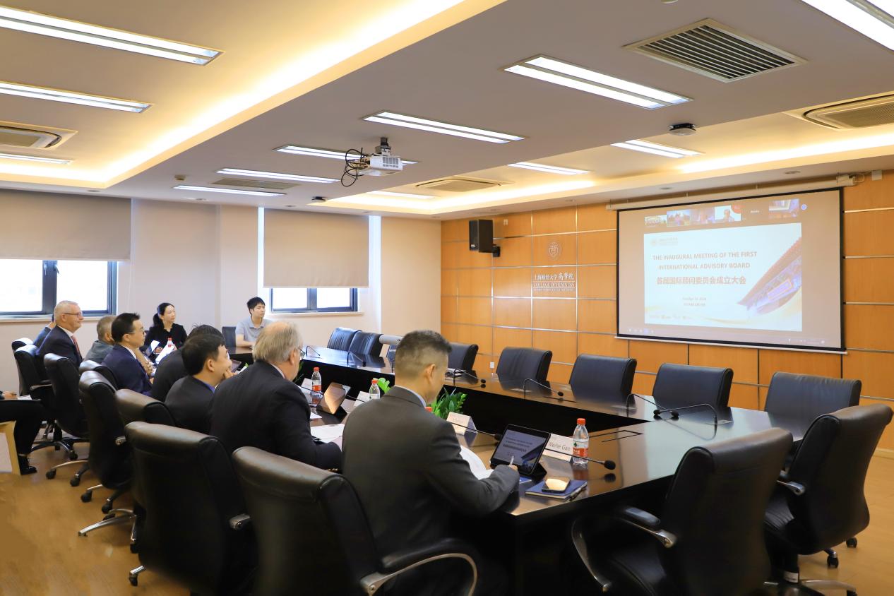On October 18, the inaugural meeting of the First International Advisory Board of College of Business (COB), Shanghai University of Finance and Economics (SUFE) was held at the Wudong Road Campus. Attendees included Prof. Chen Xinyuan, Vice President of SUFE, along with Prof. Wei Hang, Chairperson of COB Council, and Associate Deans of COB Prof. Gao Wei and Prof. Sun Qi. Members of the First International Advisory Board participated both online and in person to celebrate the establishment of the board.