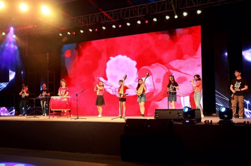 Not long after the muscial festival began to enthusiastic cheers, as an aerial video led the audience to recall the four years they had spent at SUFE. In the Trio per Uno opening performance, three performers drummed together like a thousand clusters of flame burning in the night sky.