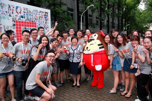 As the festival reached its penultimate stage, President Fan Liming addressed the crowd wearing the flower of the volunteers who will serve in the western regions of China and the Graduate Voluntary Teaching Groups, sending them her best wishes. Volunteer representatives also said they would do their best to be good teachers for the students in remote mountainous areas, and try to forge an impactful experience for their youth. SUFE Singers and teacher representatives then came together to sing Our Song, an old song that again made people reminisce on memories they may have thought had faded away.