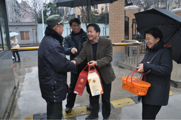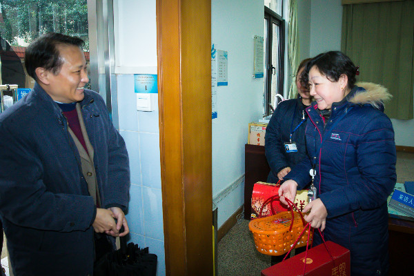 On January 22nd, SUFE leaders Cong Shuhai, Chairperson of the University Council, President Fan Liming, Vice President Chen Hong, Liu Lanjuan, Fang Hua and directors of functional departments visited the teachers and staff members who remained working during the winter vacation. They visited the guard houses, library, students dormitories, school canteen and the Education Technology Center to extend their gratitude for the work of the teachers and staff, and offered their best wishes for the coming new year.